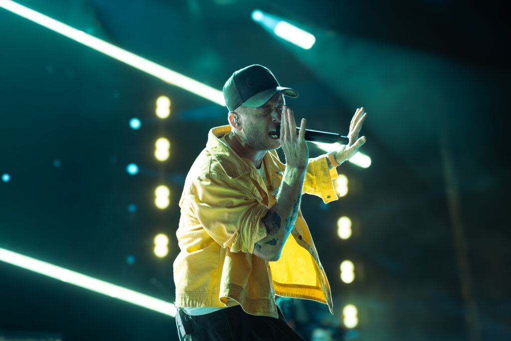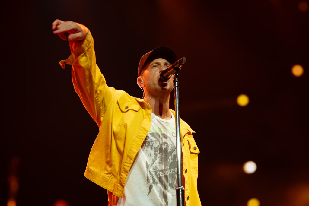 Retour sur la scène principale avec Apologize, titre tant attendu et cité plusieurs fois par le groupe qui, tout au long du show, raconte son histoire. L’émotion est palpable. Le piano résonne, le public chante chaque mot, et Tedder laisse la salle s’emparer du refrain. Puis vient I Ain’t Worried, l’un des moments les plus festifs de la soirée : riffs funky, rythme sautillant, images de Top Gun: Maverick en arrière-plan, ambiance euphorique garantie.
