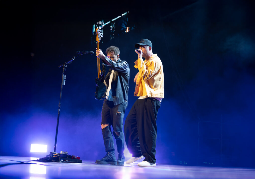 Le groupe enchaîne avec Feel Again et Kids, deux hymnes qui rappellent à quel point OneRepublic sait mêler émotion et euphorie. Sur Good Life, Bercy se transforme en chœur collectif, dans un registre déjà différent. Car l’éclectisme musicale, c’est bien ce qui définit le groupe, malgré une signature reconnaissable entre mille. Puis viennent RUNAWAY et Singapore, plus récents, où les nappes électro et les visuels futuristes projettent le public dans l’univers du nouvel album.
